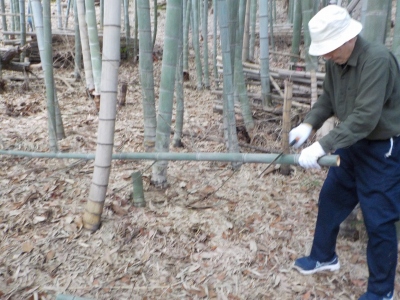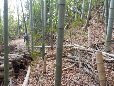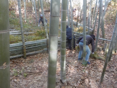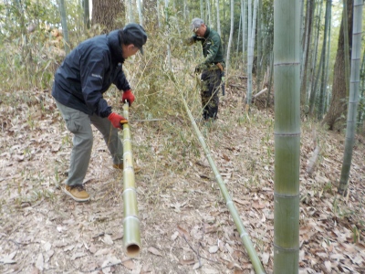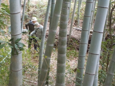 17日(土)9:30〜12:30 千里中央公園 竹林間伐・整備。竹炭焼き用にも切り出しました。