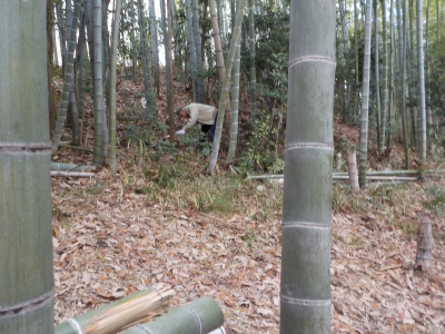 | 切った竹を片付けしています | からすの仕業!! |
