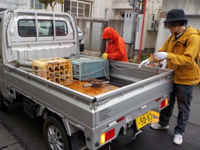 | 雨が強くなってきたので撤収しました | ”わっぱる”に持ち帰るところです |