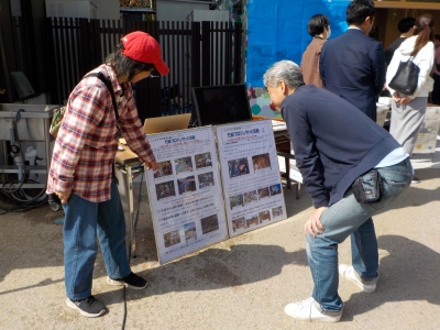 | 一周年行事で賑っていました | パネルで活動紹介 | 立ち寄りしてくれて竹のプレゼント! |