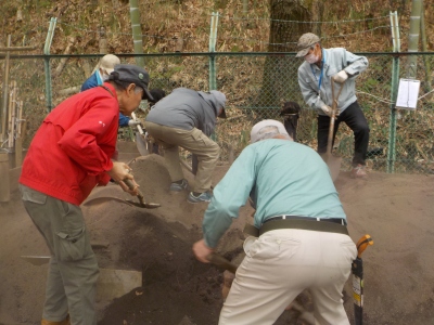 13日(火)9:30〜12:00 臨時作業。千里中央公園 竹切り作業。新しい窯の整備・補修も実施