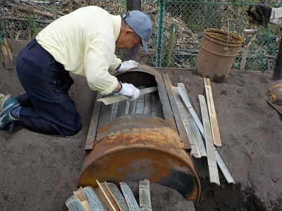 | 楽しみな窯の堀り上げです | なかなかの出来!でしたよ | 窯からコンテナに収納しています |