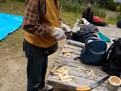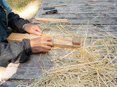 | 空いた時間で工作材料作り | ブンブンコマの羽になるのかな | 竹切り作業も |