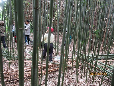 13日(土)9:30〜12:30 千里緑地(新千里北町)竹切り。会員が分担して古竹、若竹を処理しました。
