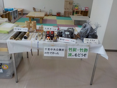 28日(日)10:00〜15:00 千里中央公園ラボ前 センリシーンズマルシェで竹炭・竹製品など有料配布しました。