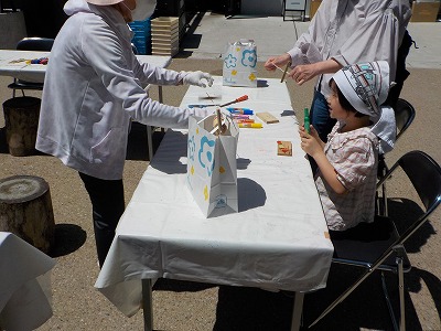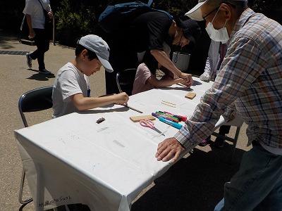 | 展示と竹炭の無料提供中 | 工作お手伝い中 | お孫さんをパシャリかな |