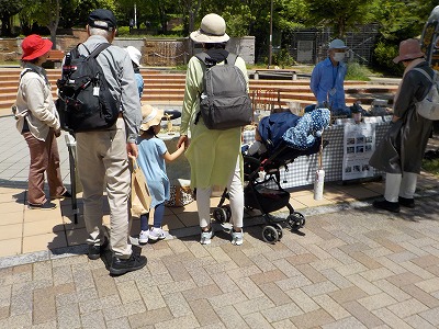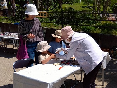 | 工作コーナーのお客さん | つくり方の説明 | 製作を見守ります |