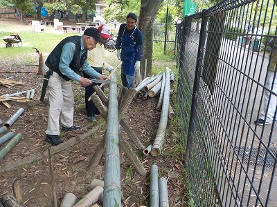 30日(火)9:30〜12:30 千里中央公園 竹間伐。公園清掃も実施。