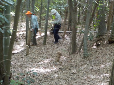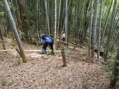 24日(月)9:00〜17:00 千里中央公園。竹切り作業