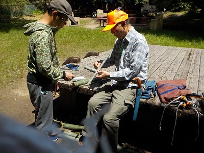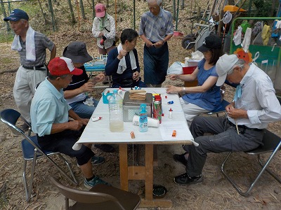 30日(火)9:30〜12:30 千里中央公園 工作準備。8月に実施する自然工作「セミ太郎」のために、竹炭プロジェクトのメンバーがあつまりました。