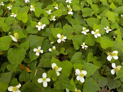 | ドクダミ 薬にもなります | タイワンタケクマバチの空けた巣穴 | ニイニイゼミ | 沢山の芽生えが見られました |