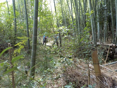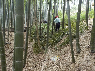 | 竹の間伐作業 | 切った竹はまとめて自然にかえします |