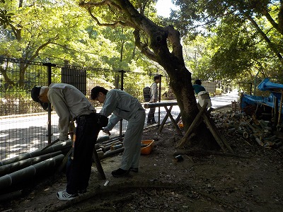 9日(土)9:30〜12:30 千里中央公園。 主にキャンドルロードに関する竹の類を林内集積場に処理したり、炊さん場を片付けたりしました。