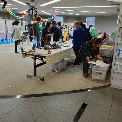 26日(土)10:00〜15:00 くらしかんまつり 午前中は竹炭・竹製品の有料配布に 午後は自然工作にと メンバーは分担してのぞみました。