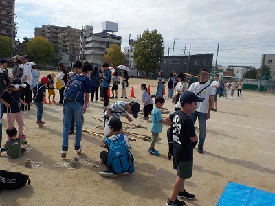 26日(土)10:00〜14:00 とよっぴーフェスタが緑と食品ののリサイクルプラザで行われました。 私たちは、竹炭・竹製品の有料配布と遊具の提供.。そして遊具の使い方、お世話などは学生ボランティアさん(阪大生)がよく手伝ってくださいました。