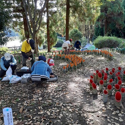 11日(金)9:30〜12:30 千里中央公園竹切り。主に、キャンドル用ポット作りを、実行委員会メンバーも含めて実施しました。